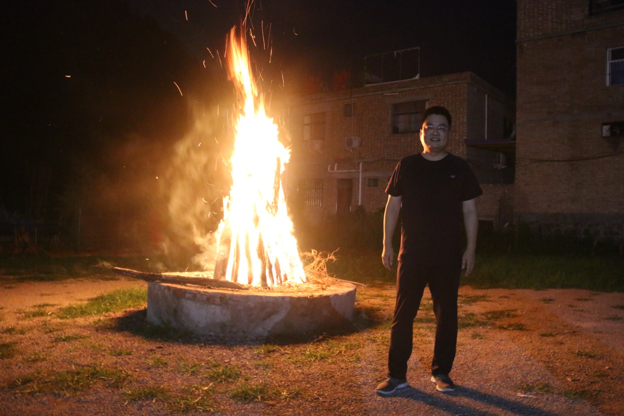 王經(jīng)理在篝火前合影留念